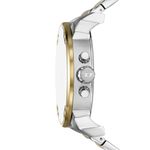El reloj Mr. Daddy 2.0 de Diesel de 57 mm presenta una esfera pulida y cepillada de dos tonos, movimientos para configurar múltiples horas y una pulsera de acero inoxidable en oro y plata.
